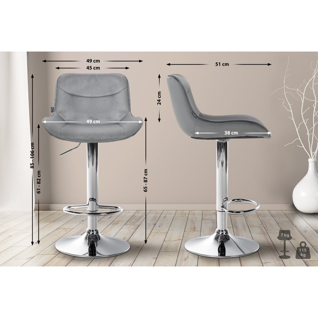 Barová židle Vonore - 2 kusy - samet - chrom noha | šedá