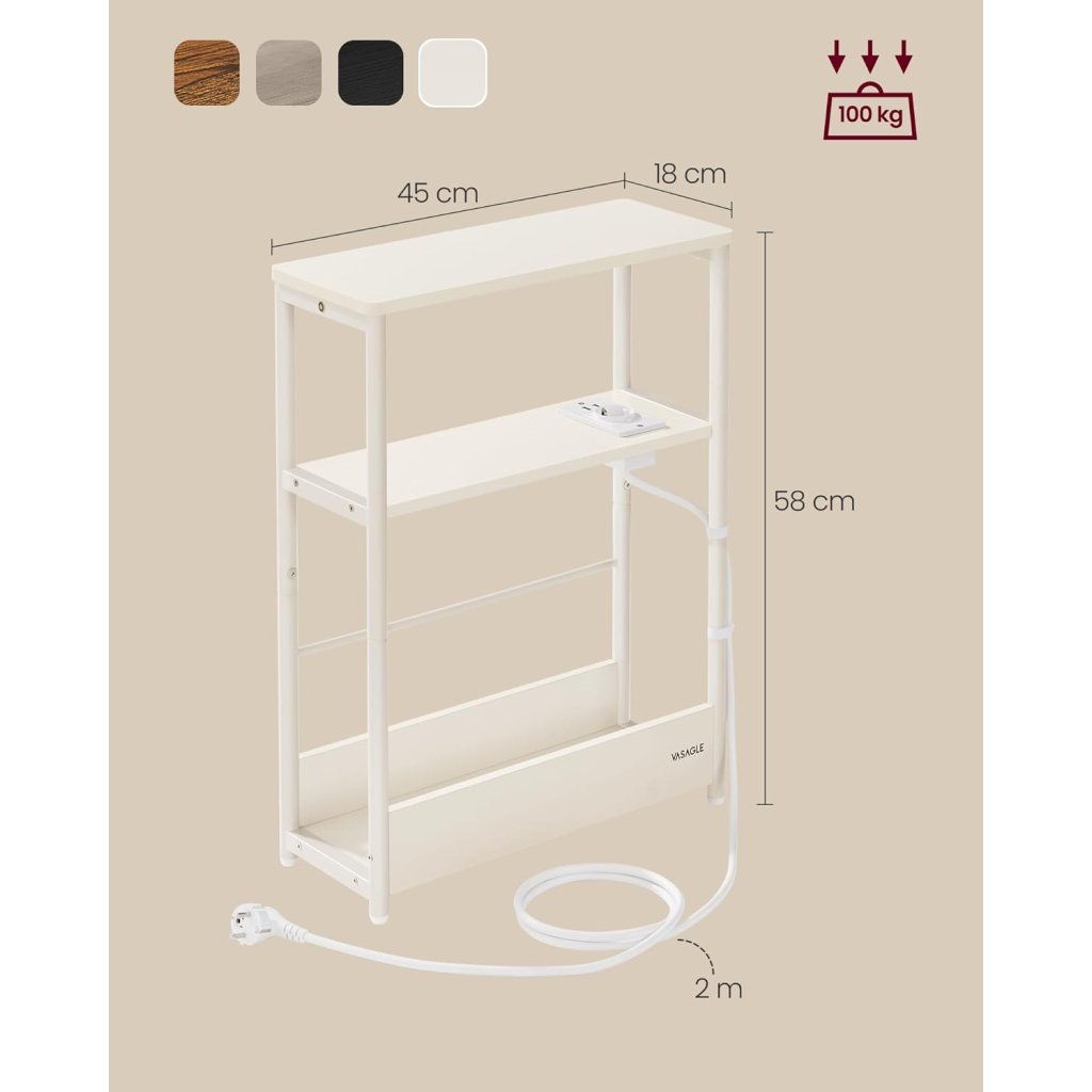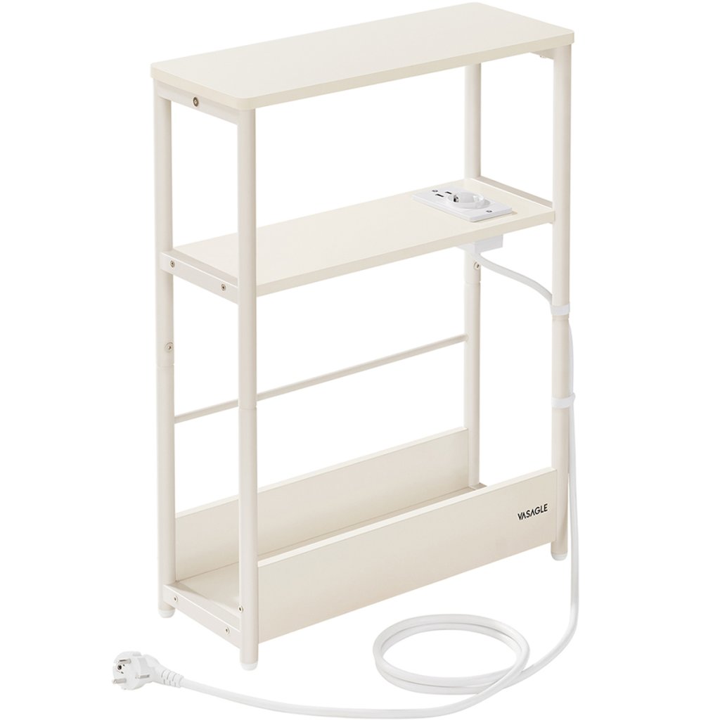 Odkládací / noční stolek Kropp s elektrickou zásuvkou a USB - úzký - krémový | 45x18x58 cm