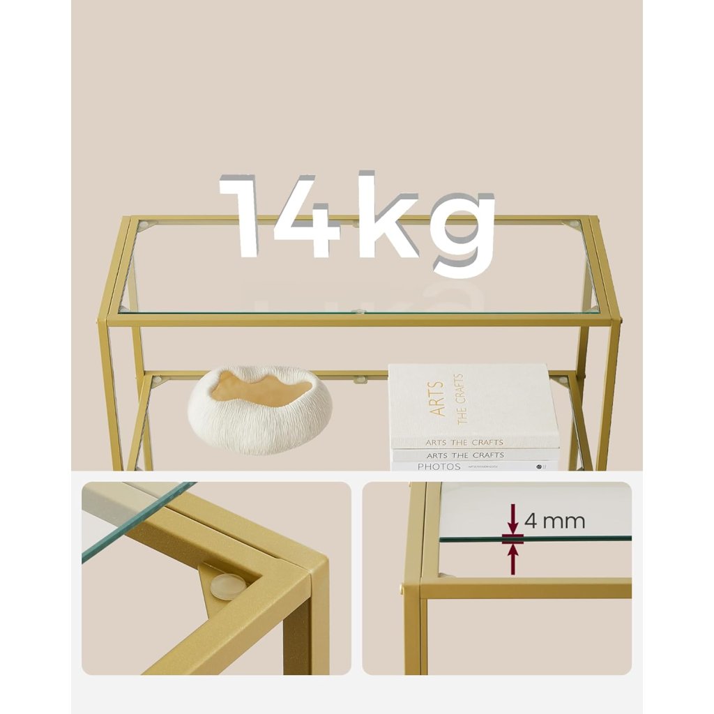 - Materiál: Tvrzené sklo (police), ocel (rám)