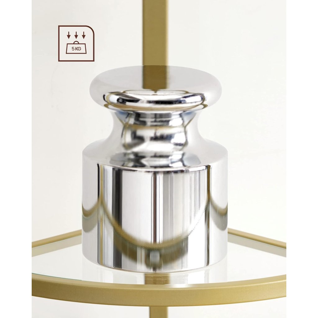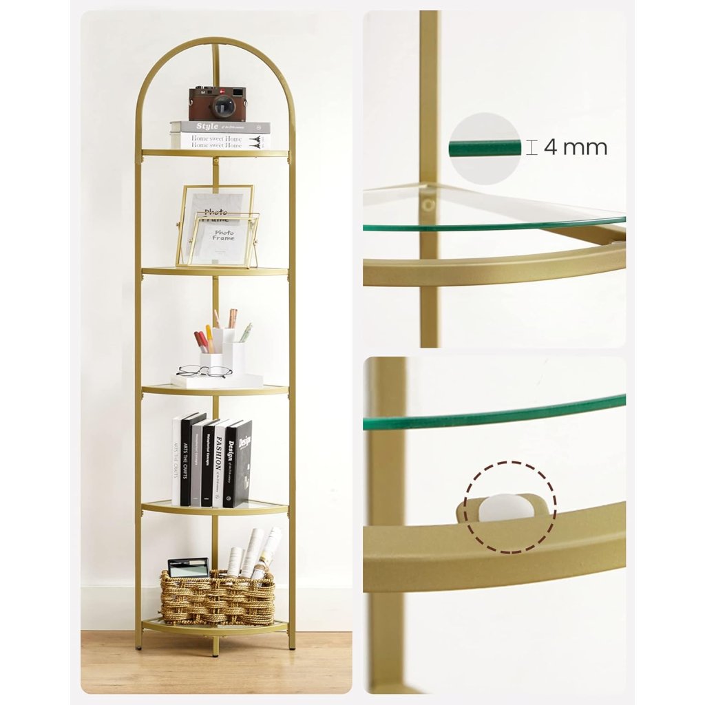 - Luxusní vzhled: Zlatý rám v kombinaci s 5 skleněnými policemi přináší do vašeho interiéru moderní eleganci a podtrhne vystavené dekorace, knihy nebo rostliny.
