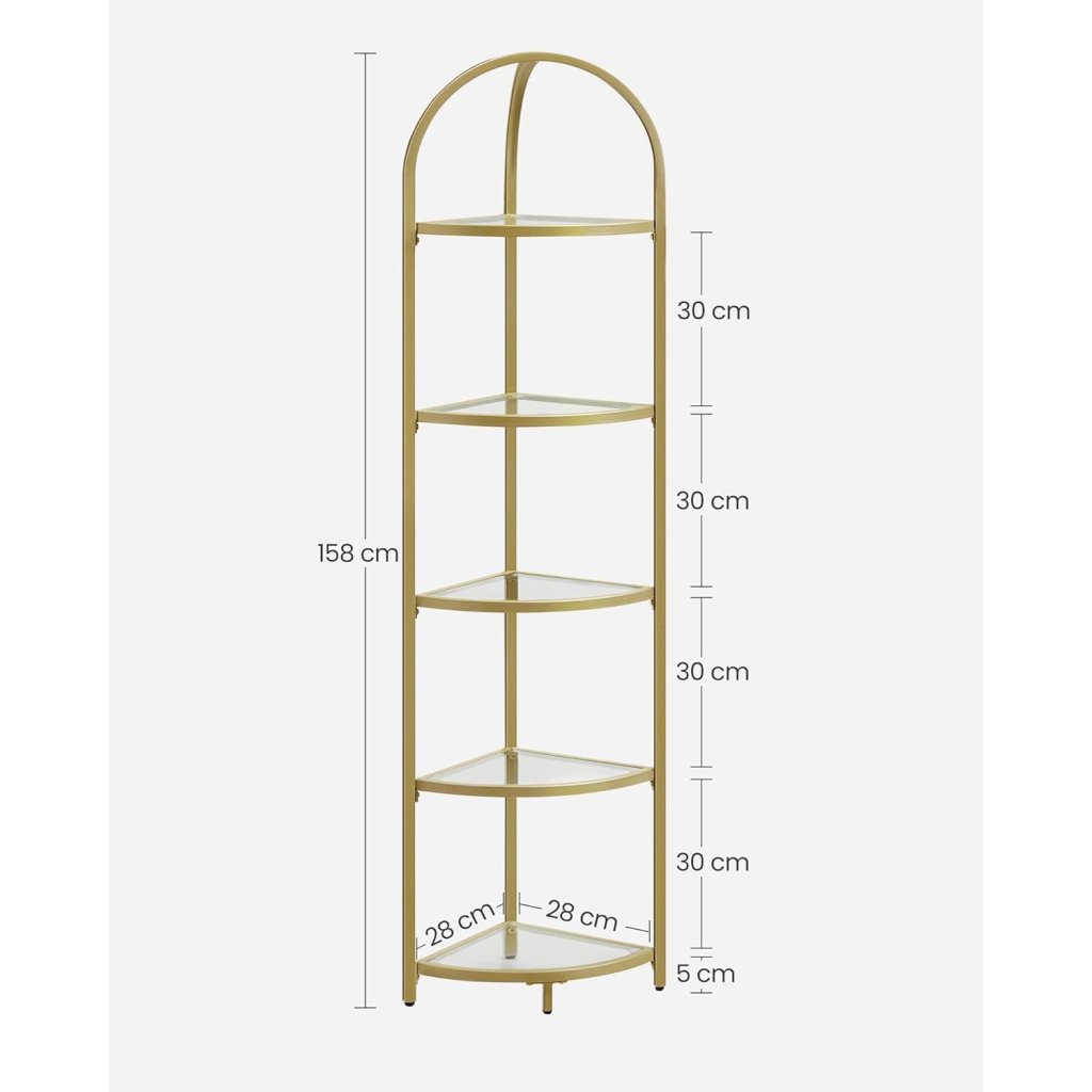 Rohová knihovna VASAGLE LGT810A01 - skleněná - 158x28x28 cm | zlatá