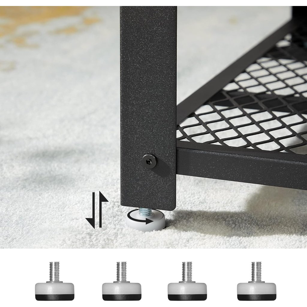 - Odolná konstrukce: Deska z kvalitní dřevotřísky, kovový rám a nohy o průměru 4,2 cm zajišťují vysokou stabilitu a nosnost – až 120 kg na horní desku a 40 kg na spodní polici.