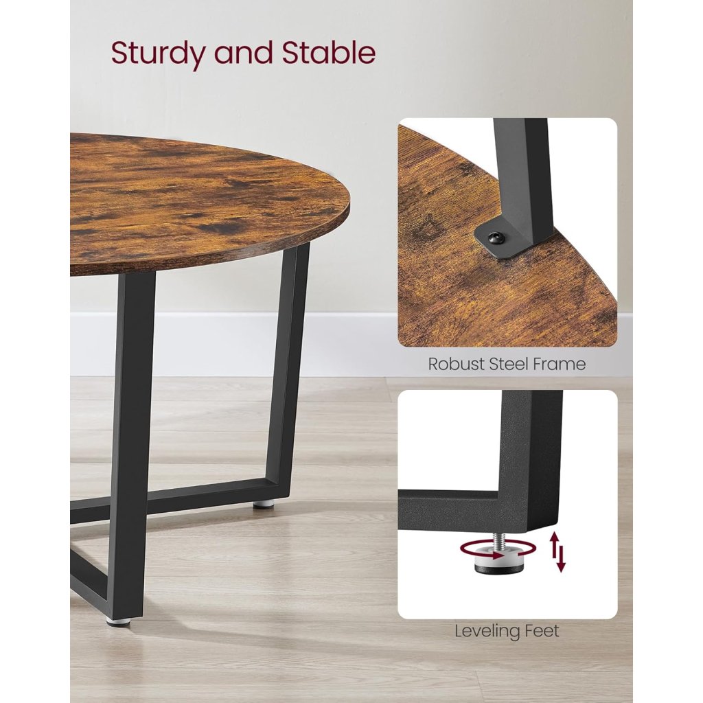 Stylový a pevný konferenční stolek Toreveg kombinuje industriální kovový rám s rustikální dřevěnou deskou a přináší tak do vašeho obývacího pokoje originalitu i praktičnost. Ideální pro setkání s přáteli, večery u filmu nebo jako elegantní doplněk každodenního interiéru.