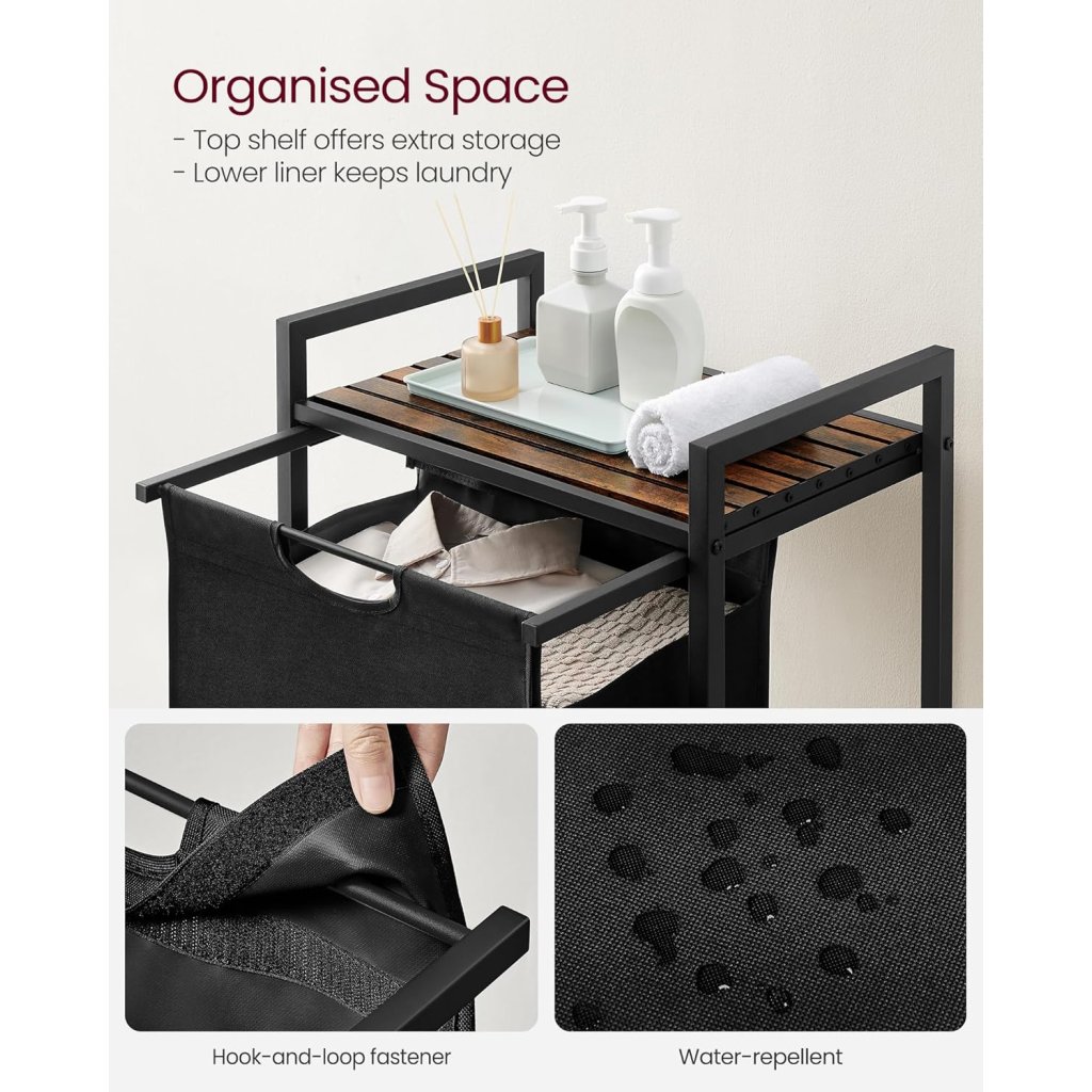 Koš na prádlo s poličkou VASAGLE BLH101B01 - 65 litrů, 72x50x33 cm | černý a hnědý