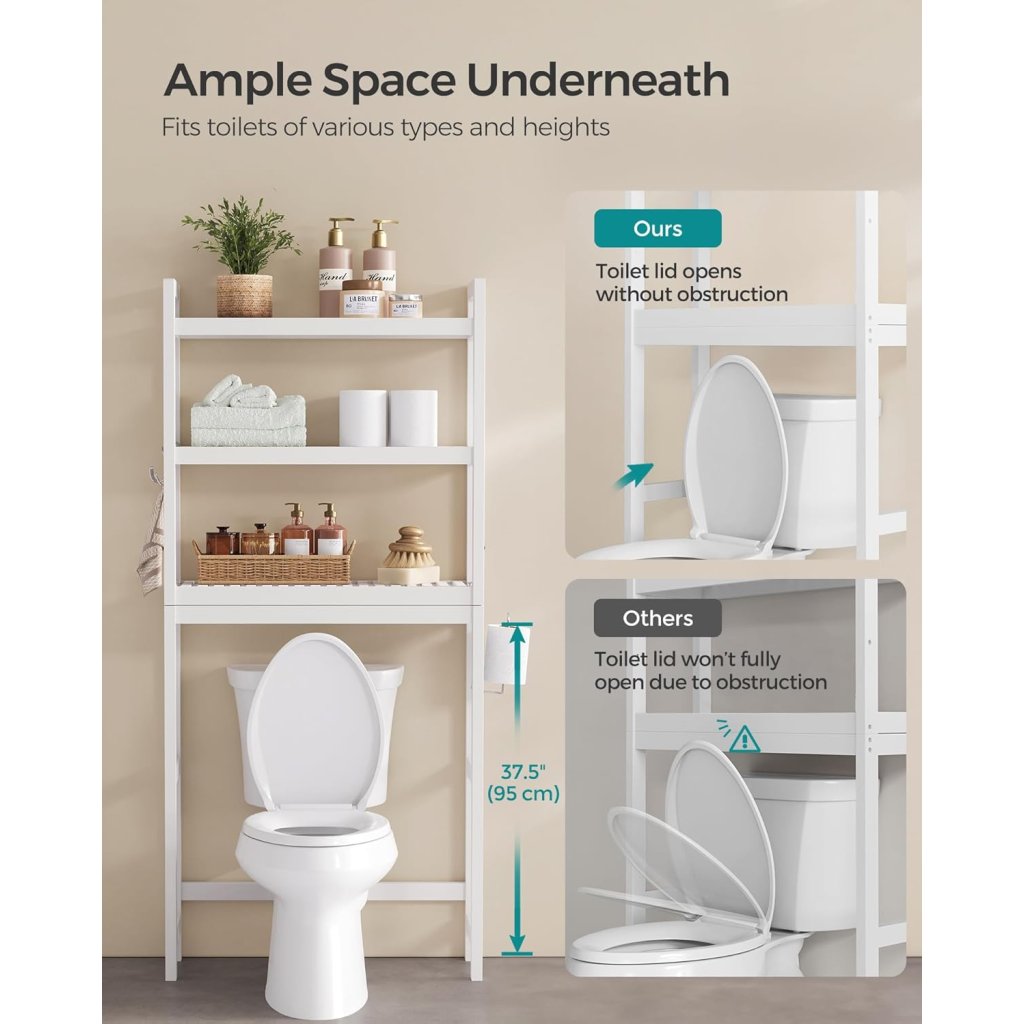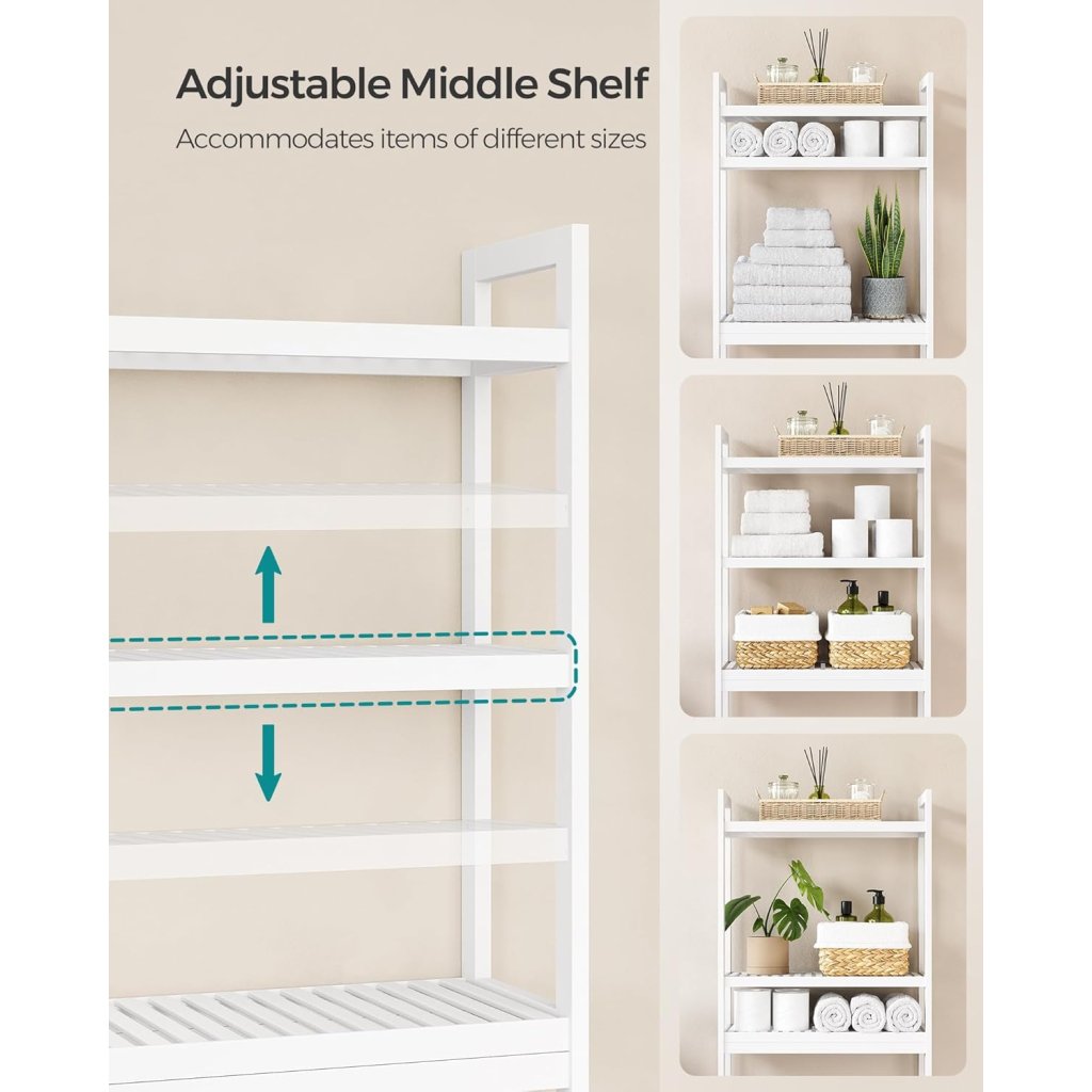 Stylový a praktický bambusový organizér nad toaletu SONGMICS BTS01WT je ideálním řešením pro každého, kdo chce efektivně využít prostor v koupelně. Nabízí kombinaci přírodního designu, vysoké stability a promyšlené funkčnosti pro ukládání všech nezbytností.