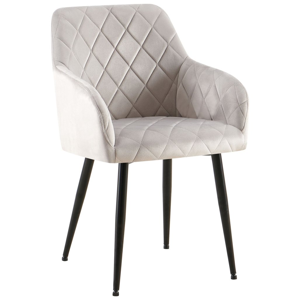 Židle disponuje prostorně polstrovaným sedákem s dekorativním prošíváním ve tvaru kosočtverců. Měkké polstrování zajišťuje komfortní sezení i po delší dobu. K celkovému pohodlí přispívají také područky a ergonomicky tvarovaná opěrka zad.