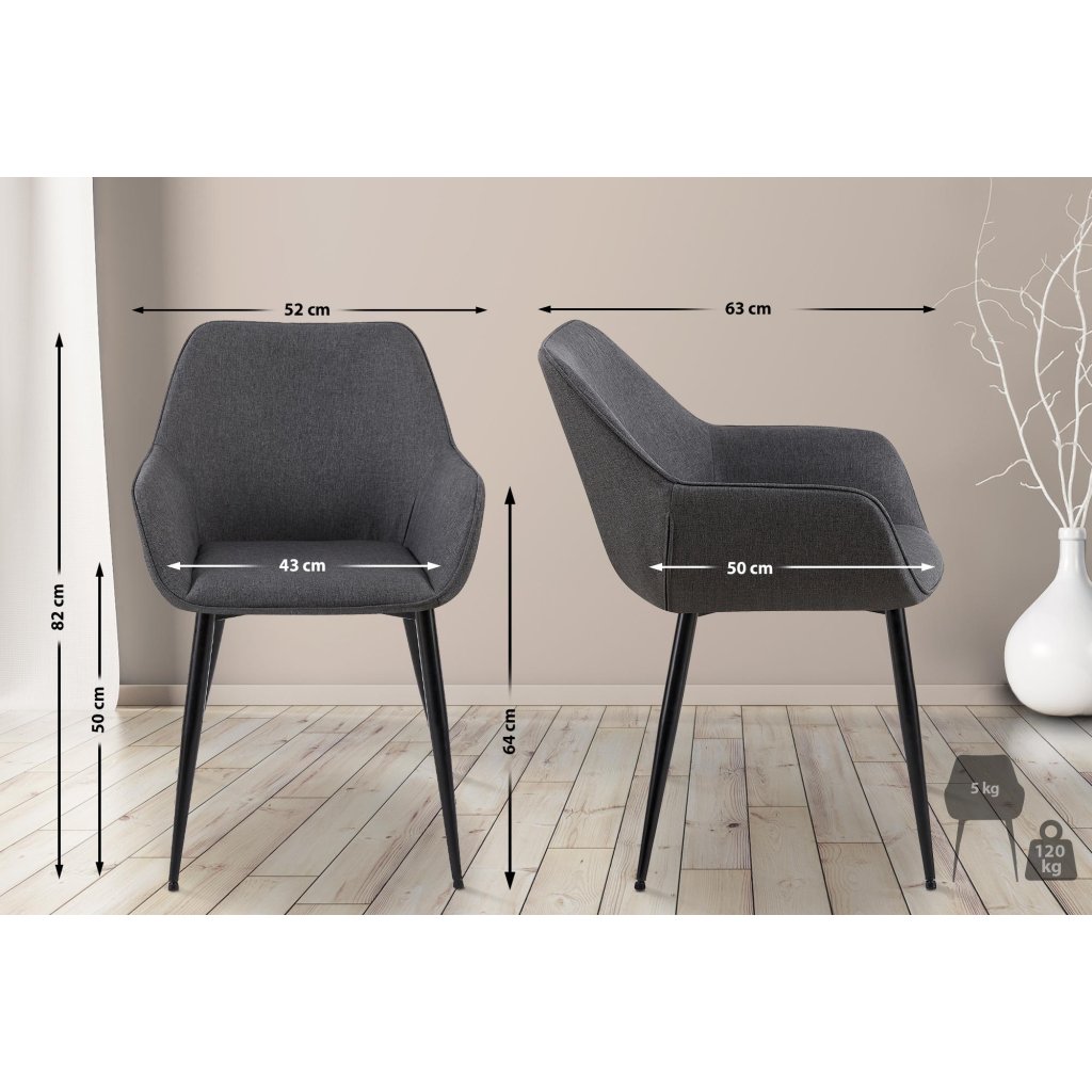 Jídelní židle Vessa - 2 kusy - látka | tmavě šedá