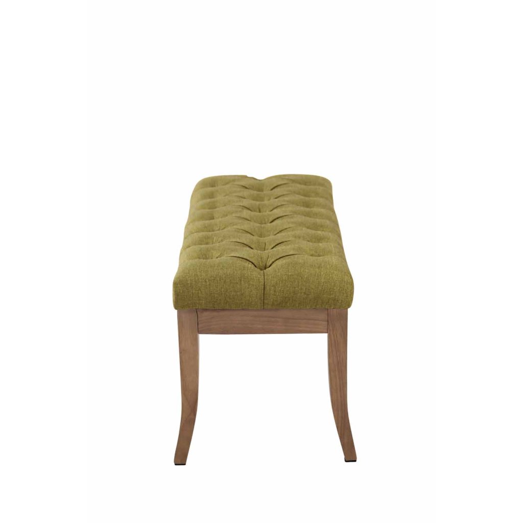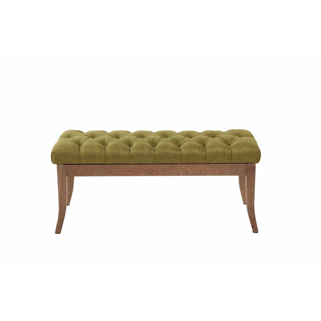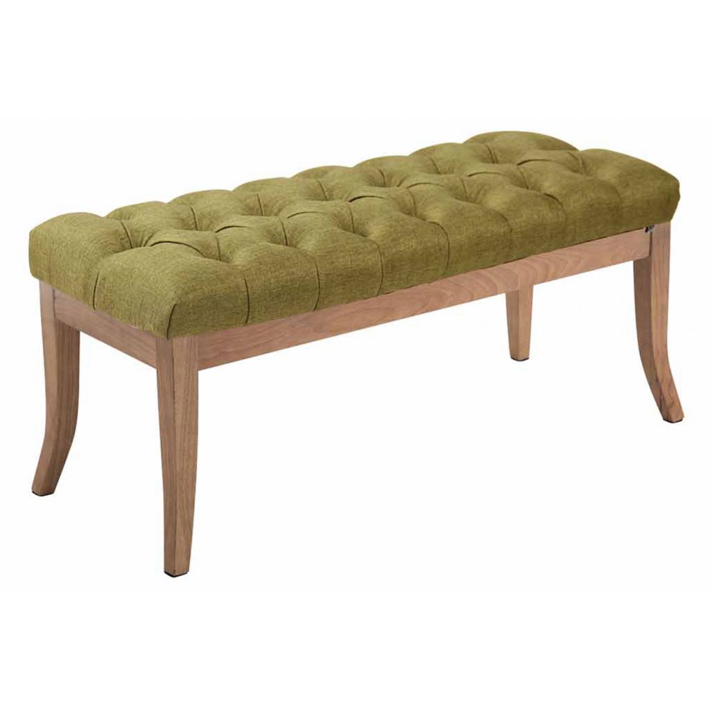 Chesterfield lavice Bleech - látkové čalounění - světlý rám - 100 cm | zelená