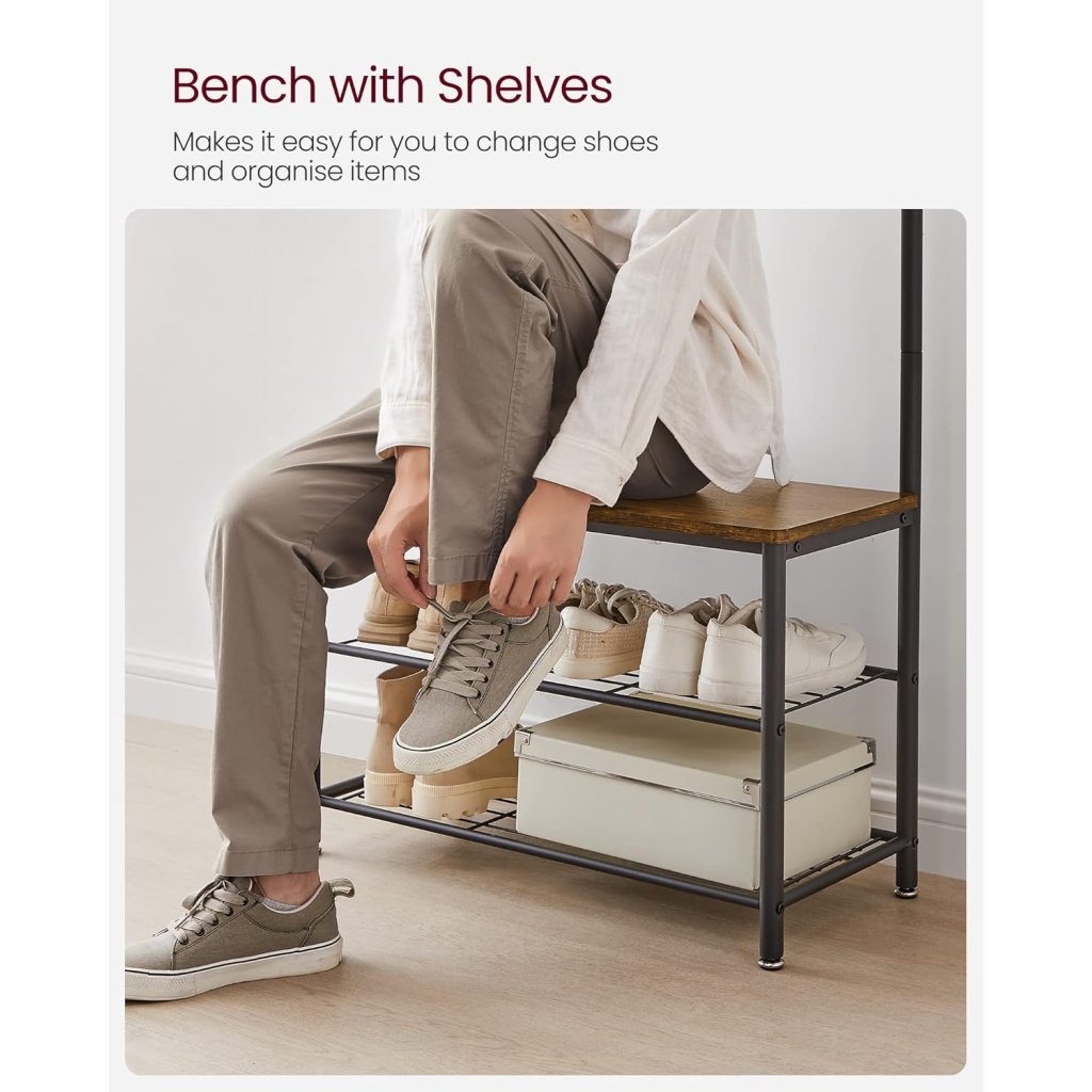 Stylový a všestranný šatní stojan SONGMICS HSR41BX v industriálním stylu kombinuje věšák, lavici a botník v jednom. Ideální řešení pro vstupní chodby, předsíně či menší byty, kde je třeba chytře využít prostor.