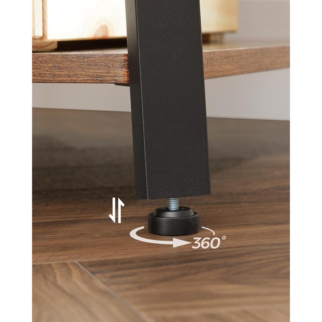 - Stabilní konstrukce: Třípatrový design s různě velkými policemi a kuželovitými kovovými nohami zajišťuje stabilitu. Nastavitelné nožičky pomáhají udržet rovnováhu i na mírně nerovné podlaze.
