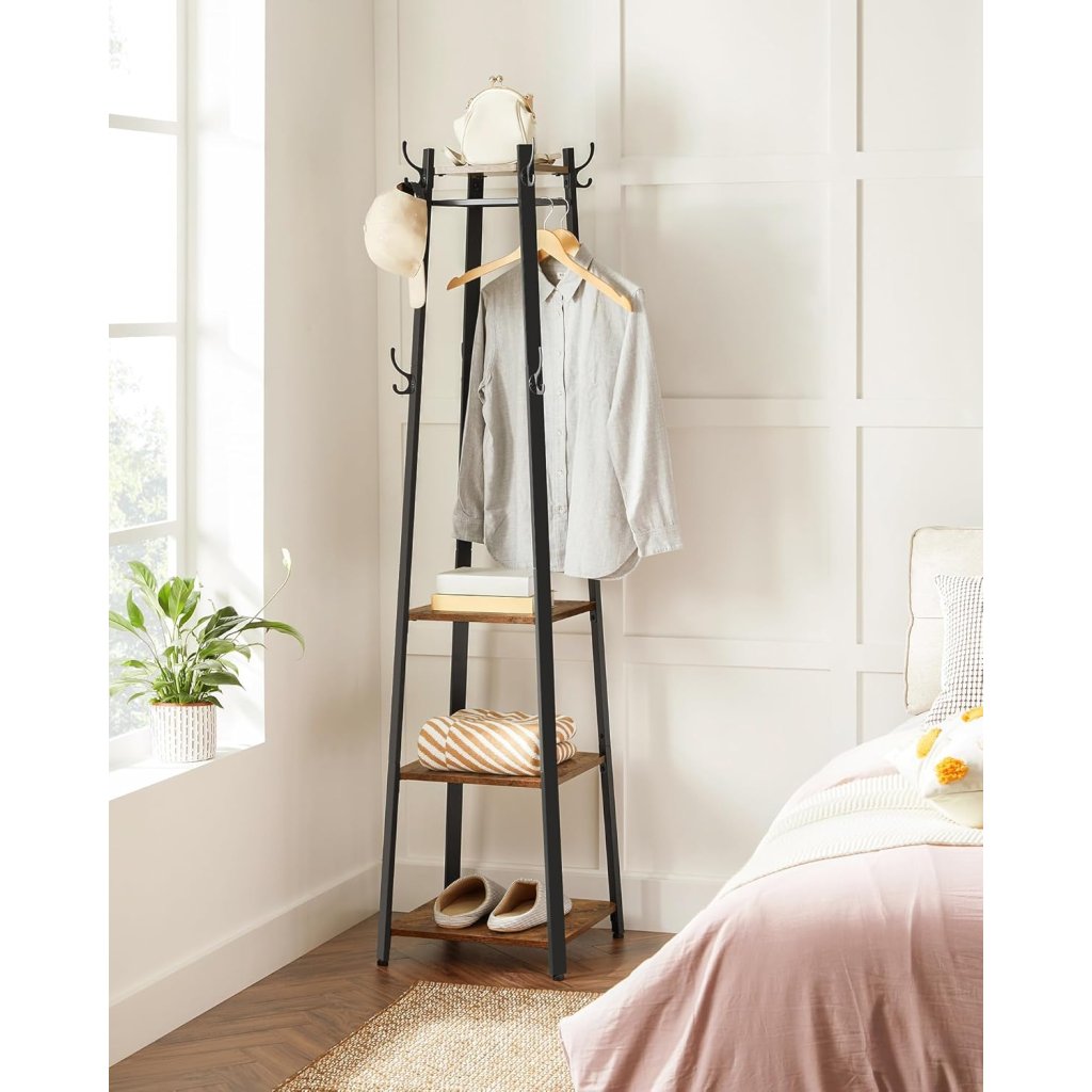 Věšák / Stojan na oblečení LCR80X - se 4 policemi - 180 cm vysoký | hnědý a černý